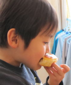 KEIたんは、まだまだ甘いパンが好きなので、レーズンシュガーにかぶりつき。