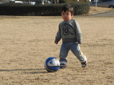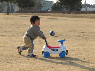 サッカーしたり、ブーブ押したり。