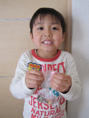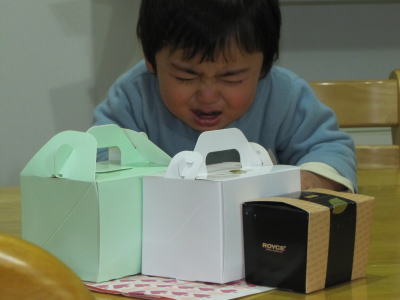 と・・・、写真撮るために中を見ては見たものの、KOU君寝てるから後で食べようとしまい始めたら、KEIたん泣き崩れた