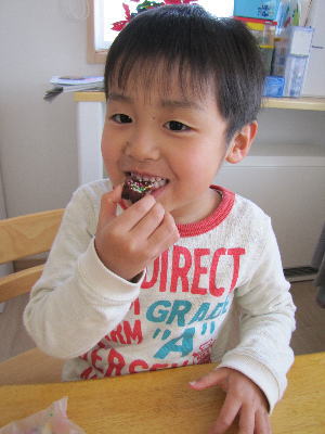 大人味の高級ガトーショコラ、子供の口にはどうかと思ったけどKEIたんは美味しく頂けたようです。