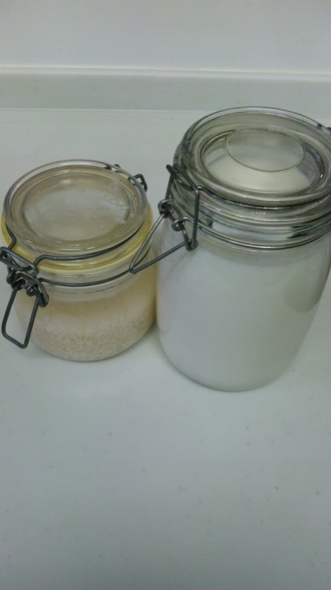 パパのばぁばから味噌作りをした時の残りの麹を頂いたので、今話題の塩麹(左)と、