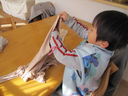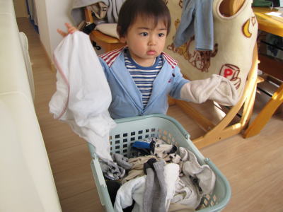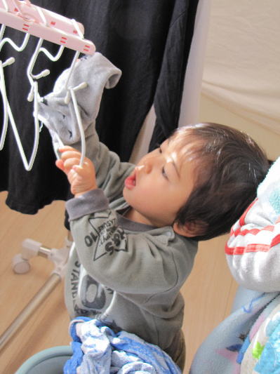 今日も頑張ってお洗濯干すの手伝ってくれてるKEIたんです。
