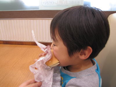 KOU君とKEIたんはハンバーガーを1個ずつ。