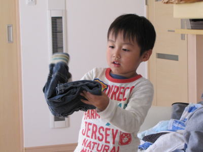 最近はママと一緒に畳むことが多くなったKOU君ですが、今日はひとまず全部お任せしてみました。