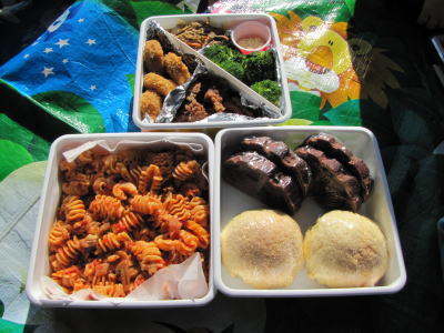 ばぁばが沢山お惣菜のおかずを買ってきてくれたので、みんなでがっついて頂きました。