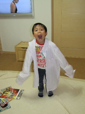 パパの脱いだYシャツ羽織って、お医者さん気分でテンションも