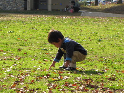 キックボードしたり、落ち葉拾いしたりしてママがお迎えお願いする夕方までいい子で遊んでくれてたみたい。