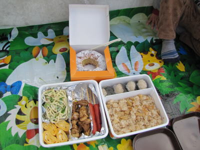 ママがランチしてる間、パパと子供達はお昼を買って公園へ。