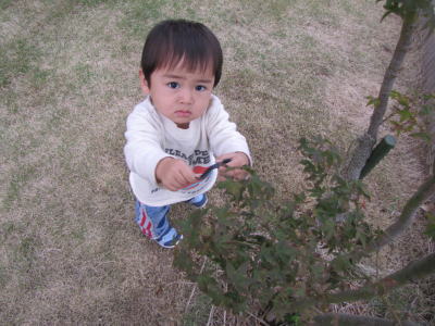 KEIたんは・・・いつもこの公園では石を拾って味見をするのが好きなんだけど、さすがに季節がかわると味見の対象も変化して、今日は落ち葉の味見を楽しんでました。