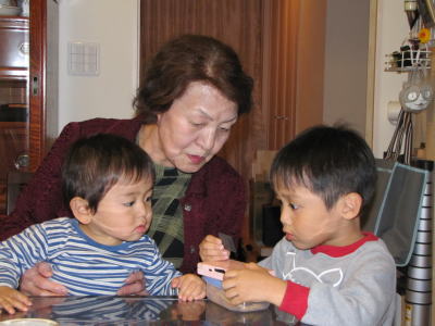 子供達にも食べやすいお菓子を買ってきてくれたので、2人ともがっついてました。